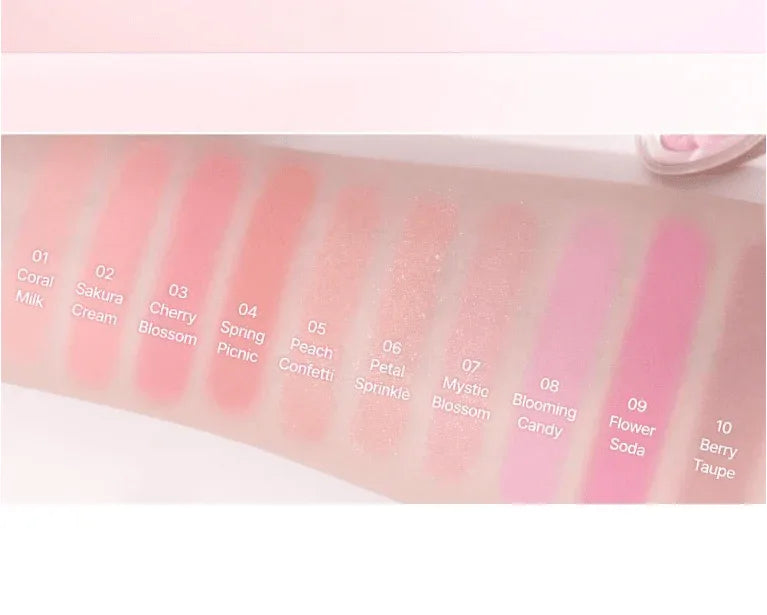 The Dasique - Pink Blossom Blooming Single Shadow - 10 Colors is ideal for all skin types, making it a must-have in every makeup enthusiast's collection. Enjoy the freedom to express your creativity with this beautiful eyeshadow palette!
